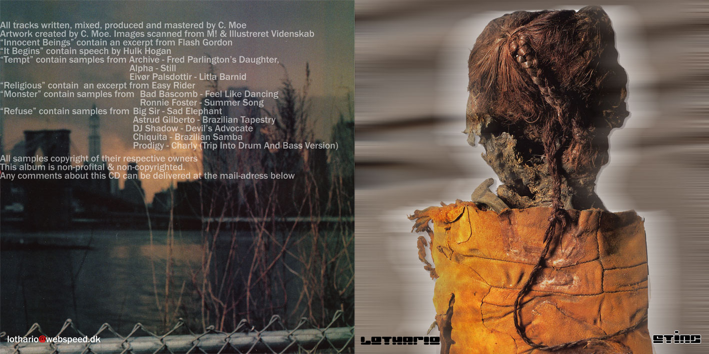 BK Music ONE Presents: LOTHARIO - STING Full album release 01 – Innocent Beings 02 – It Begins 03 – Tempt 04 – Liquid 05 – Pump 06 – Religious 07 – Monster 08 – Surrogate For Your Mind 09 – Refuse 10 – White Cloth